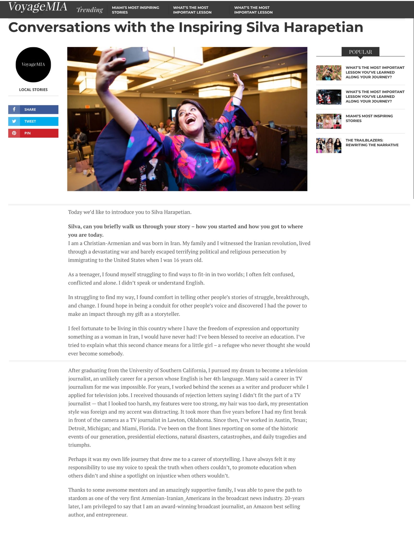 An award-winning journalist and an Amazon best-selling author, Silva Harapetian has been in the front lines covering stories for leading networks including NBC, ABC, CBS, and FOX. She’s been featured globally as a personality in online and print magazines as well as television and radio shows including NBC’s “The Today Show” with Kathie Lee & Hoda, Australia’s “Today” and syndicated talk show, “The Nate Berkus Show.”